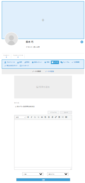 公開範囲に「誰でも」を指定した場合は、他の会員にはプロフィールページで公開されます。