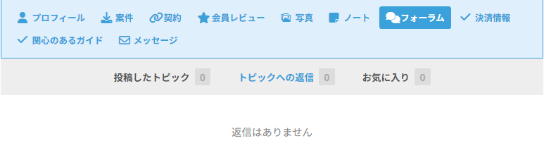 「トピックへの返信」では、会員が投稿したトピックへの返信が一覧表示されます。リンクをクリックすると投稿が表示されます。